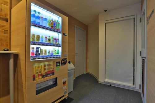 Beyond the capsules, guests can unwind in the hotel’s minimalist lounge area, perfect for reading, working remotely, or sipping a cup of tea. A small shared kitchenette includes a microwave, electric kettle, and refrigerator, offering convenience for light meals or snacks. The atmosphere remains quiet and cozy—ideal for solo travelers seeking a break from Osaka’s lively streets.