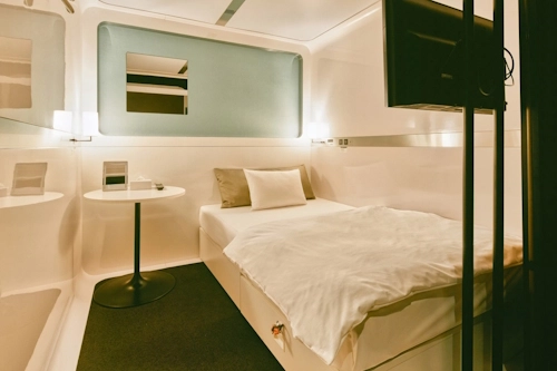 Located just a 30-second walk from Akasaka Station, First Cabin Akasaka offers an elevated capsule-style experience with a refined twist. Guests can choose between spacious First Class cabins with semi-double beds and side tables, or more compact Business Class units—both featuring personal TVs, Wi‑Fi, and secure in-cabin safes. The hotel also includes a relaxing café-bar, public bath, and shared lounge—ideal for unwinding after a busy day in Tokyo’s Minato district.