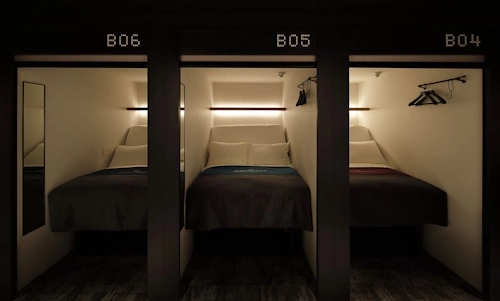 Quietly nestled within Shibuya’s ‘Ura-Shibuya’ district—just a short walk from Shinsen Station—Nadeshiko Hotel Shibuya offers an elegant, women-only capsule experience that balances convenience with tranquility. In this peaceful hideaway, guests enjoy cocoon-style capsules with wristlet lighting, USB ports, personal clocks, and separate secure lockers. The public bath uses advanced BreathAir® mattresses and hand-scented toiletries to lift away the day. A tatami lounge, communal laundry, and on-site powder room add thoughtful touches designed for comfort and ease.