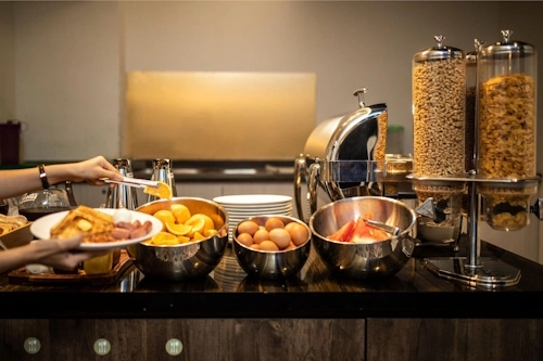 | Food & Drink | Daily breakfast buffet, filtered water refill stations, self-serve snack area |