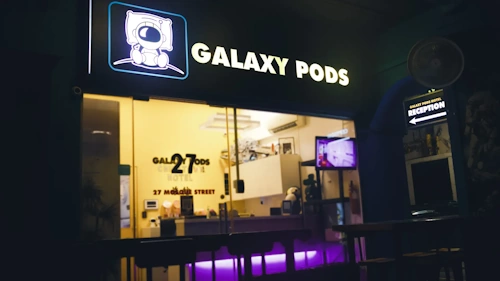Discover what makes Galaxy Pods @ Chinatown stand out through its images. From the glowing, futuristic pods with ambient lighting to the minimalist common spaces, the photos showcase a unique stay that feels part hotel, part sci-fi adventure.