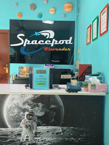 The images of Spacepod @ Lavender highlight its striking space-themed concept—rows of glowing white capsules, sleek interiors bathed in blue ambient light, and neatly designed common areas. Each photo captures how the property transforms capsule living into an immersive, sci-fi-inspired escape.